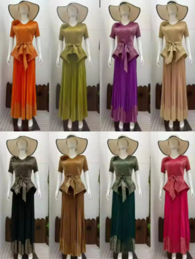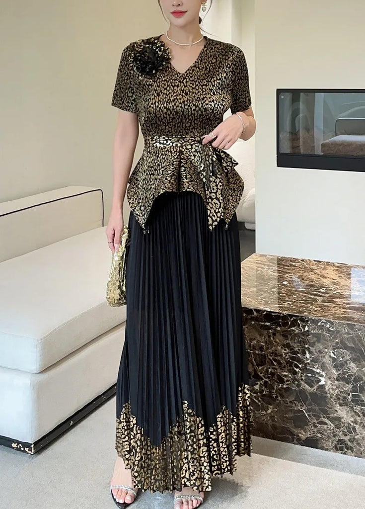 2025 Spring New Fashion Casual Suit Women's Bronzing Bud V-neck Top High Waist Long Skirt Two-piece Set