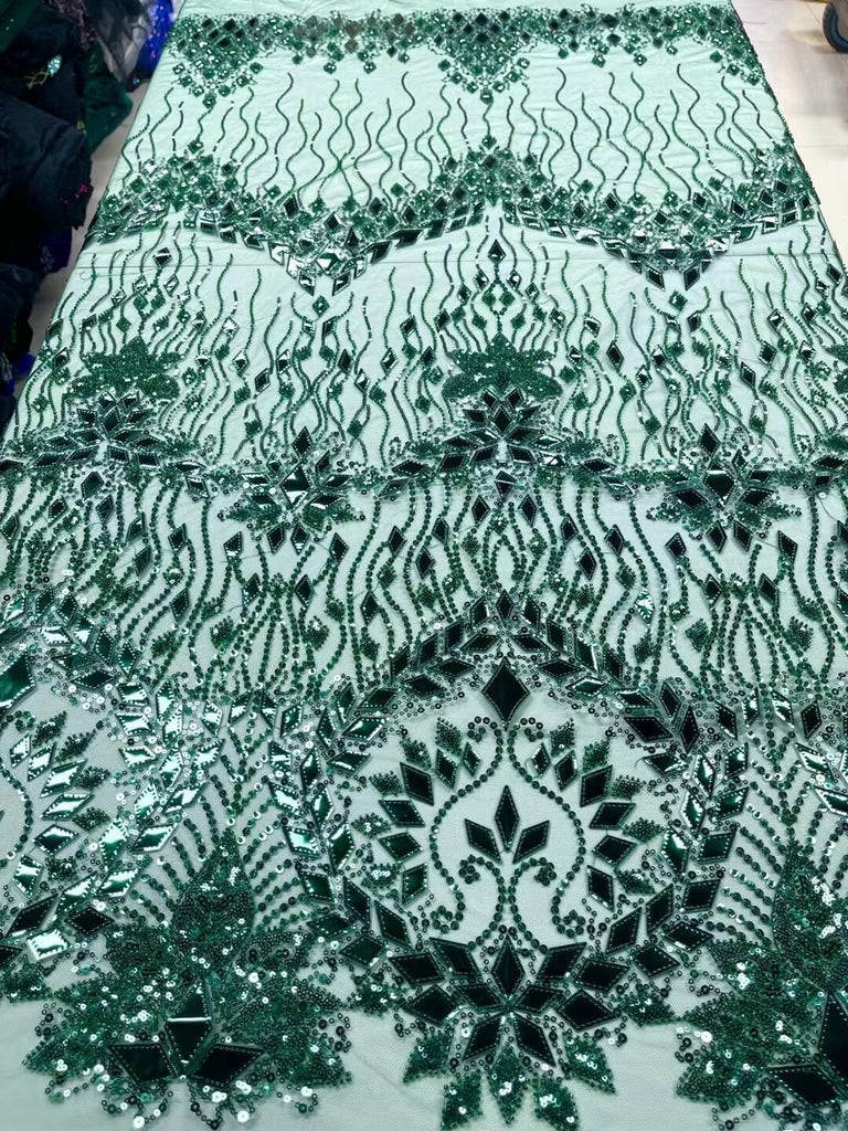 Tulle Lace Beaded Fabric With Sequins For Dresses 5yards