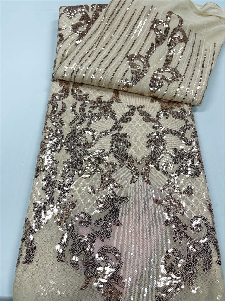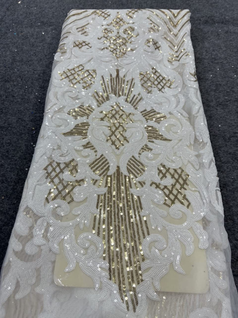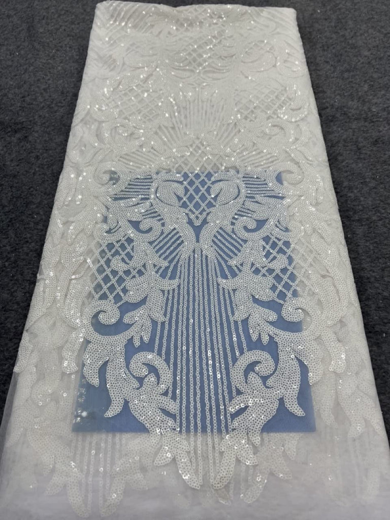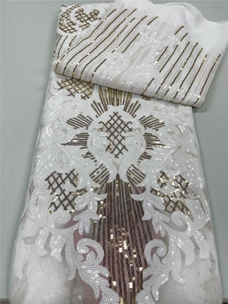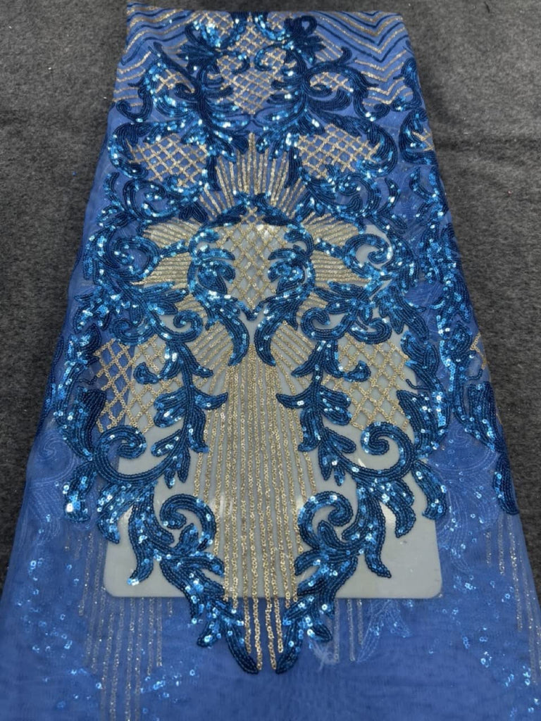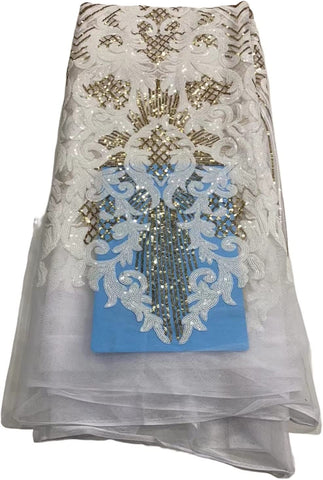 This beautiful African lace fabric is ideal for crafting stylish, unique dresses. It is 3 yards of French beaded lace net tulle fabric with intricate embroidery. Perfect for any creative project, this lace fabric is sure to make a lasting impression.