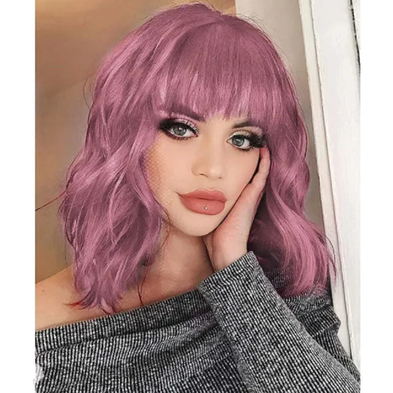 Women Wigs Curly Short Bob with Bangs Wine Red Heat Resistant